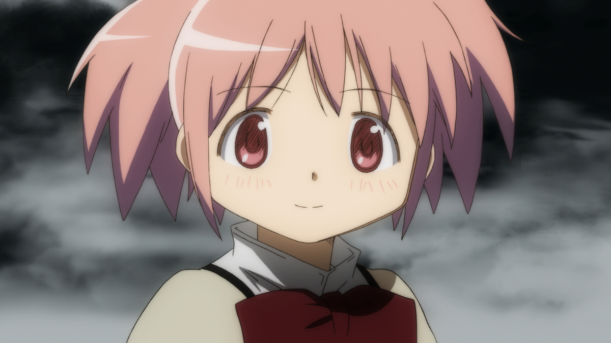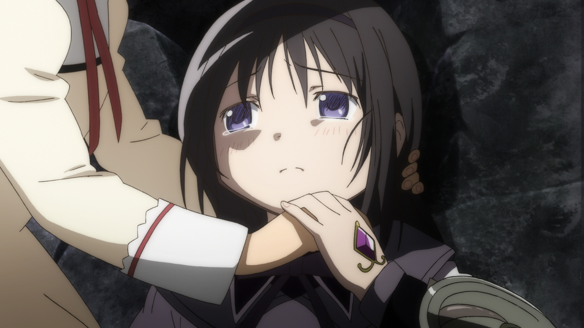 何度挑戦しても勝てないくやしさ、自分の行為がかえってまどかを苦しめることになっていたことへの絶望で、自らのソウルジェムを黒く染め上げていく。そんなほむらの前に現れた少女、鹿目まどか。まどかは、決意のまなざしでワルプルギスの夜を見据え、ほむらに言い放つ。